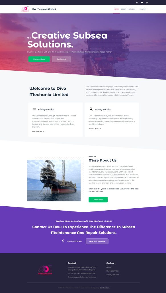 We developed a modern and engaging website for Dive Mechanix Limited to effectively represent its values and services. The platform includes: